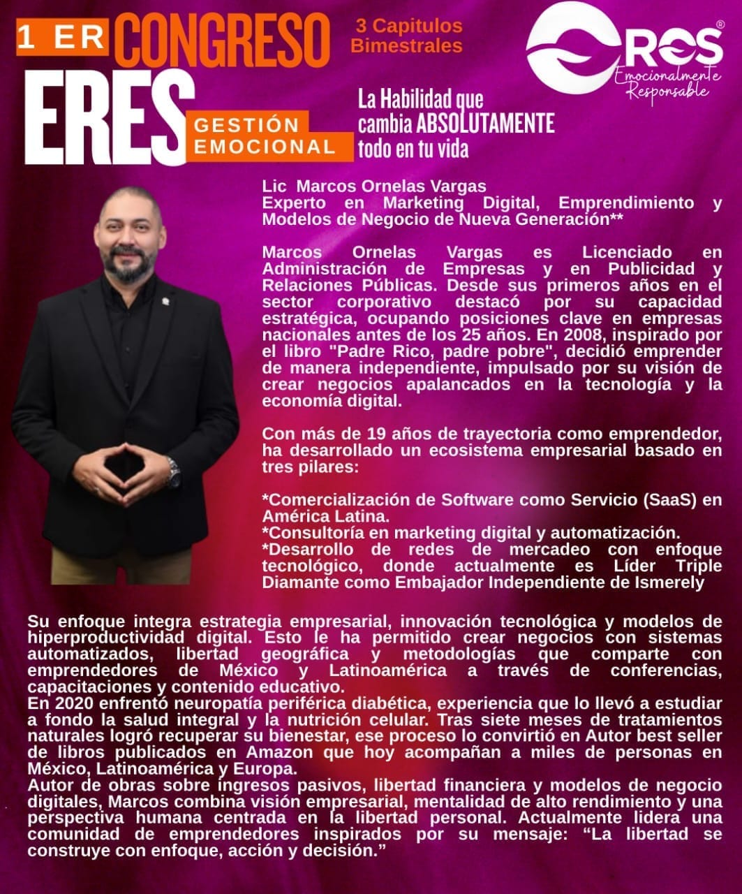 El Congreso ERES nace con una misión clara: ayudarte a entender lo que sientes, de dónde viene y cómo transformarlo en decisiones más conscientes para tu vida, tus relaciones y tu futuro. En este Capítulo III nos enfocamos en la gestión emocional financiera y la neuroeconomía, para que puedas ver con otros ojos tus hábitos, tus miedos y tus decisiones alrededor del dinero.
